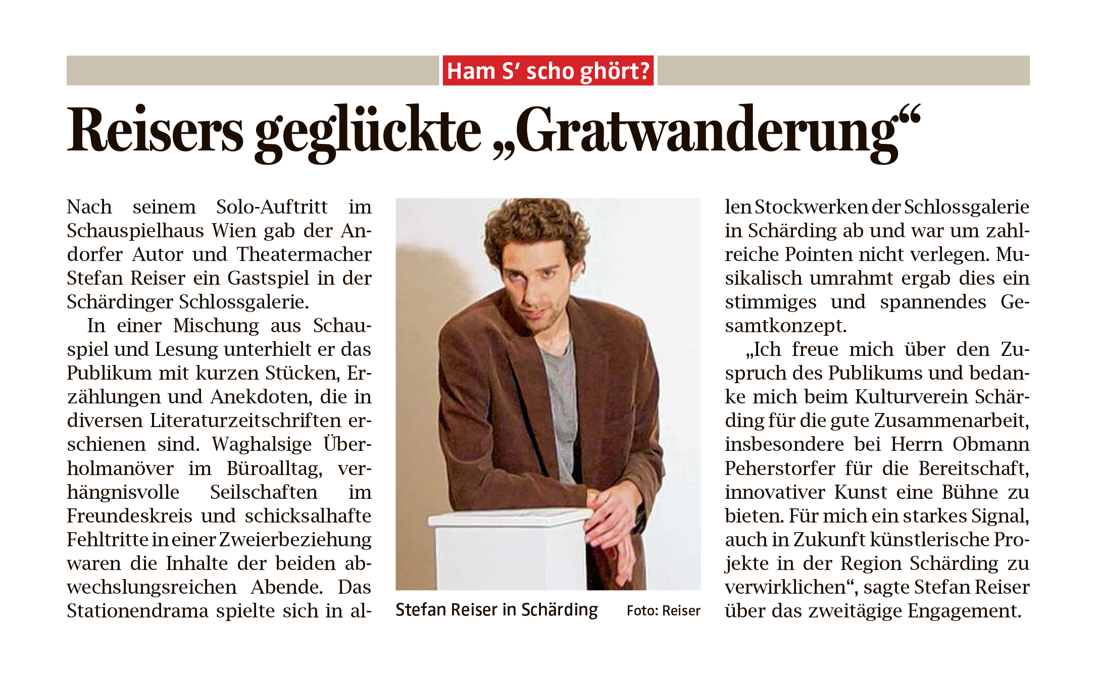 Gastspiele u. a. im 4kubikmetertheater, Wien, 2010; Salon Goldschlag, Wien, 2010; Tatort Hernals, Wien, 2011; Schloss Wartholz Literatursalon, Reichenau a. d. Rax, 2011. Zuletzt zu sehen bei der kolik.autoren.lounge im Schauspielhaus, Wien, sowie im Rahmen zweier szenischen Abende in der Schlossgalerie, Schärding, Februar/März 2015.