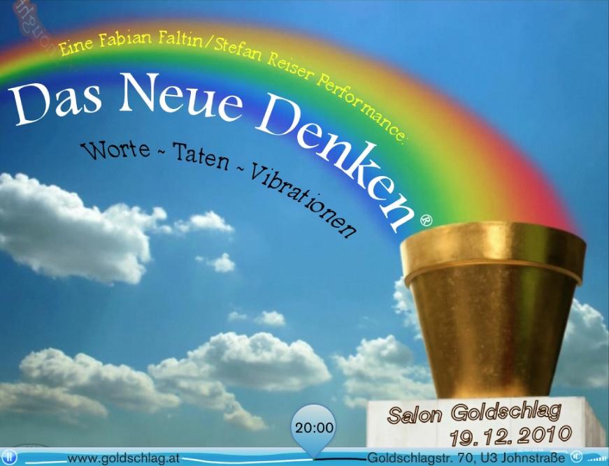 Auszug aus Faltins Anmerkungen zur Inszenierung: Der Ablauf besteht im Wesentlichen aus Versuchsanordnungen und Bekenntnissen, in denen die zwei Performer aneinander die Kraft des Denkens auszuloten versuchen. (…) Dabei wird auch die Geschichte des ‚Positiven Denkens’ erzählt – nicht in einem direkten wissenschaftlichen Diskurs, sondern anhand ausgewählter Schlüsselbeispiele und Textpassagen. (…) Am Anfang ist absolute Konzentration und Stille herzustellen.