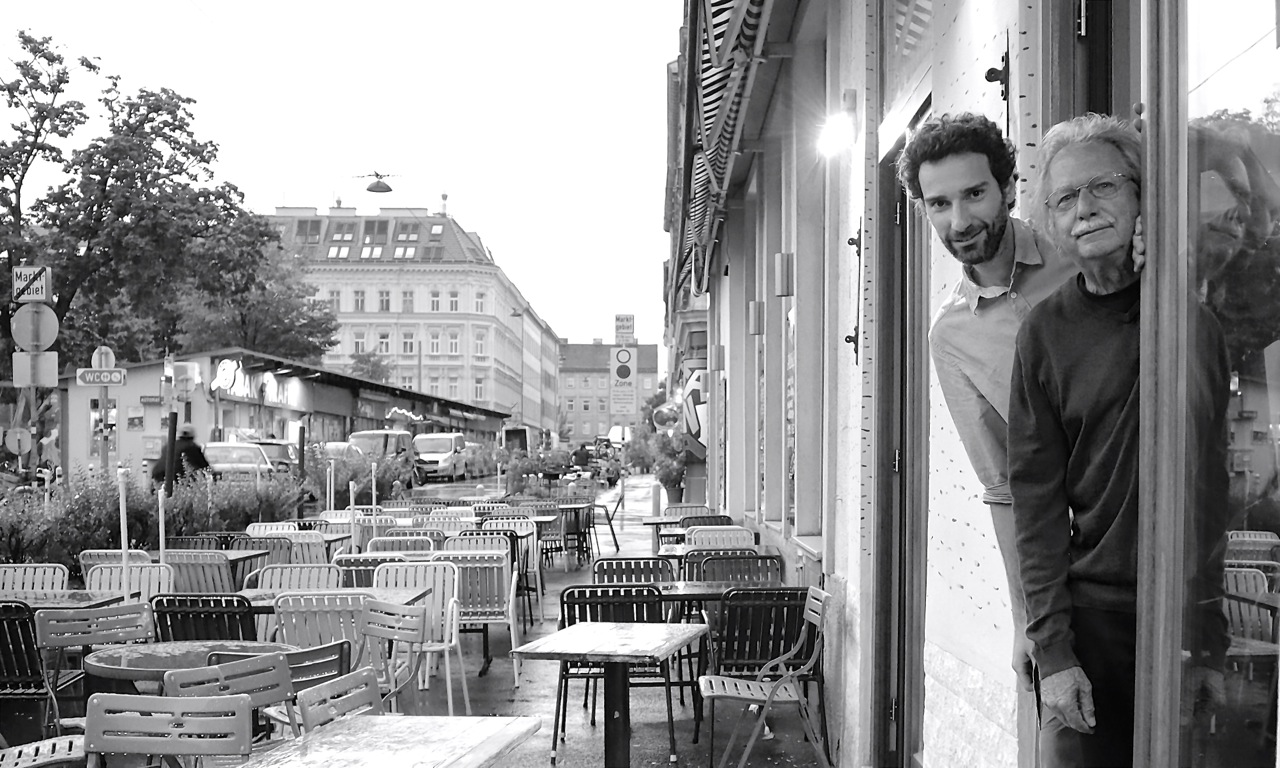 Ach (re.) und Reiser (li.); Foto: © Stefan Reiser. https://stefanreiser.com/manfred-ach-und-stefan-reiser-lesen-miniaturen/
